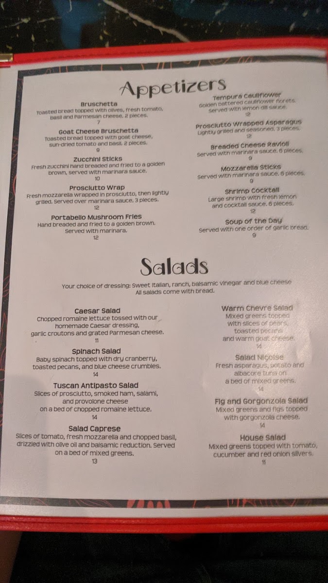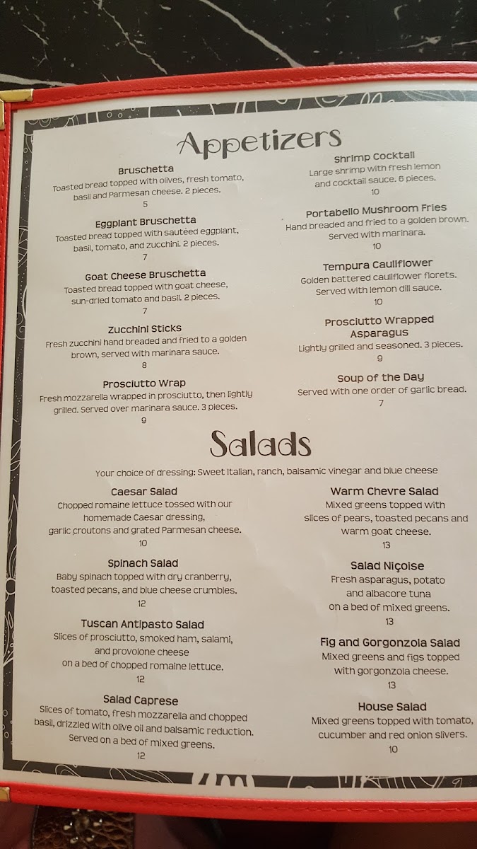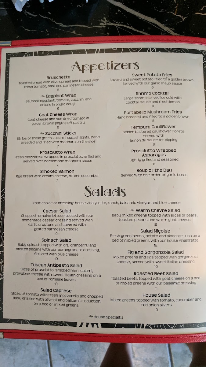 From a reviewer’s perspective, the menu at Perfetto Italian Restaurant offers a well-rounded and comforting journey through classic Italian flavors, making it a fitting conclusion to the dining experience at 209 S Green St, Tehachapi. Starting with appetizers, choices like Bruschetta, Eggplant Wrap, Goat Cheese Wrap, Zucchini Sticks, and Prosciutto Wrap set a welcoming tone, balancing freshness and richness while preparing the palate for what follows. The salad selection continues this balance, with lighter, vibrant options such as Spinach Salad and Salad Caprese, alongside heartier plates like Tuscan Antipasto Salad, Caesar Salad, and Warm Chevre Salad, all of which reflect a thoughtful mix of tradition and variety.